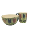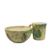 Ez a harmonikus szett egy 3 dl-es kerámia bögrét és egy 4,5 dl-es müzlis tálat tartalmaz, melyek mindkettő a vácegresi De Jó Dió Otthon kreatív műhelyében készültek értelmi akadályozottsággal élő emberek közreműködésével.