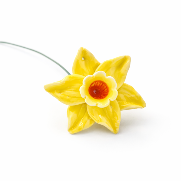 Színes, vidám kerámia nárcisz, amely egész évben a tavasz hangulatát hozza el otthonodba. Kedves apró kiegészítő vázába, kaspóba, ajándékcsomagra kötve vagy önmagában, egyetlen szálként is elegáns dekoráció.